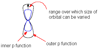with an inner orbital represented by 3 Gaussian, and middle and outer orbitals