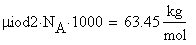 das ist die reduzierte Masse eines Iodmoleküls in kg