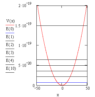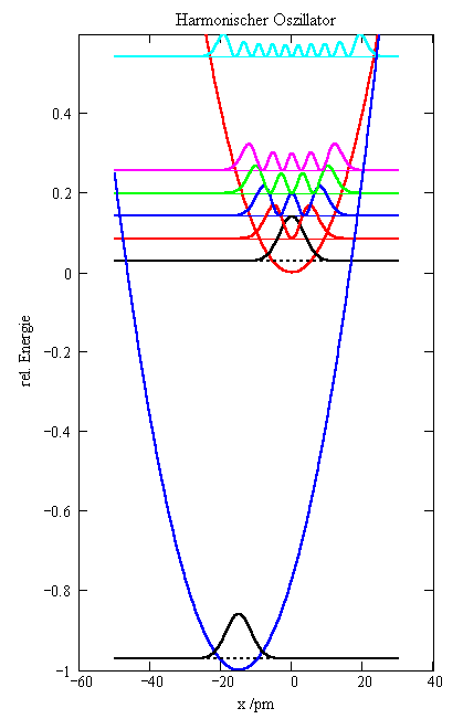 Um Wellenfunktionen, Potenzialkurve und Energiewerte in einem Diagramm darstellen zu können, machen wir folgende Skalierung: