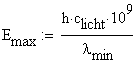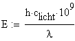 Als Nächstes berechnen wir die Energien und die Wellenlängen: