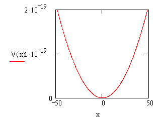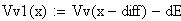 Obige Potenzialkurve soll die Potenzialkurve des oberen Elektronenzustandes darstellen. Der untere soll durch die gleiche Potenzialkurve mit den gleichen Wellenfunktionen aber um die elektronische Anregungsenergie dE nach unten und um die Differenz der Gleichgewichtsabstände diff nach rechts oder links verschoben werden.