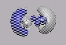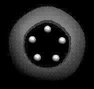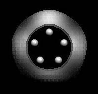 Man erkennt auch nur zwei Knotenebenen: eine vertikale Ebene, die den 5-Ring zerschneidet und eine sphärische Knotenebene.
