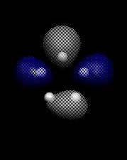 Das sind auch nur zwei Knotenebenen, aber eine durch ein H-Atom (vertikal). Bei den ersten fünf MO's ist der Unterschied zwischen Minimalbasissatz und gesplitteten Basissatz nur quantitativ. Bei den höheren Basissätzen treten zusätzliche sphärische Knotenflächen auf.