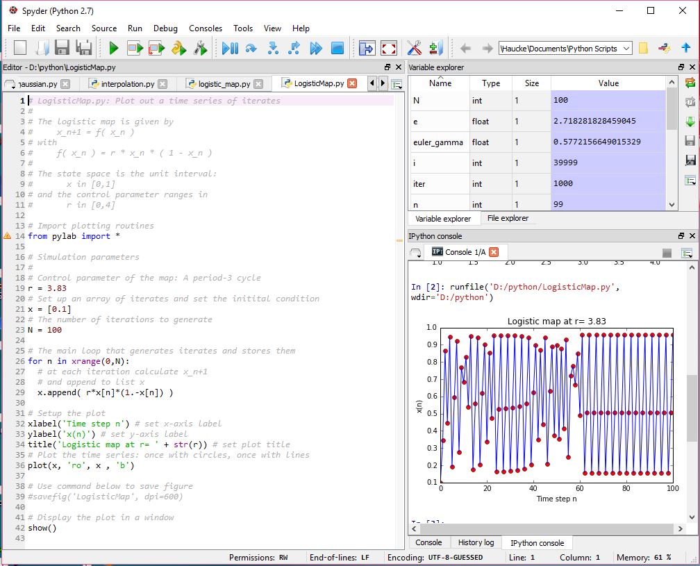 Python-Code für die "Logistic Map" in der Spyder-IDE: